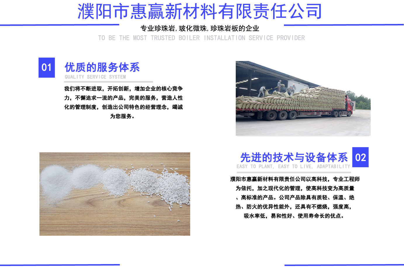 珍珠巖,玻化微珠,?;⒅楸厣皾{, 珍珠巖板,憎水珍珠巖,憎水型珍珠巖, 憎水型膨脹珍珠巖, 膨脹珍珠巖,珠光砂-濮陽市惠贏新材料有限責任公司 公司簡介/ ABOUT